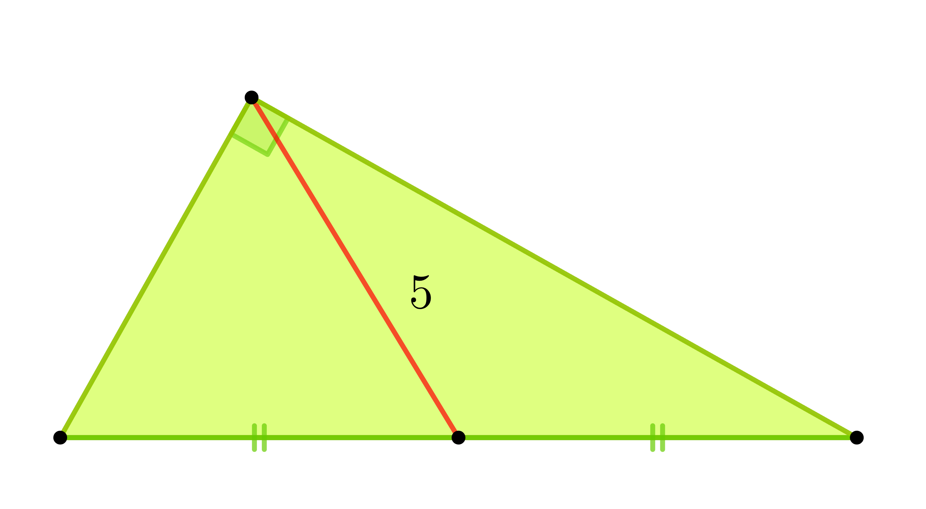 En un triangle rectangle, tracem la mediana del vèrtex oposat a la hipotenusa. Si aquesta mediana mesura $5$ unitats, quant mesura la hipotenusa?